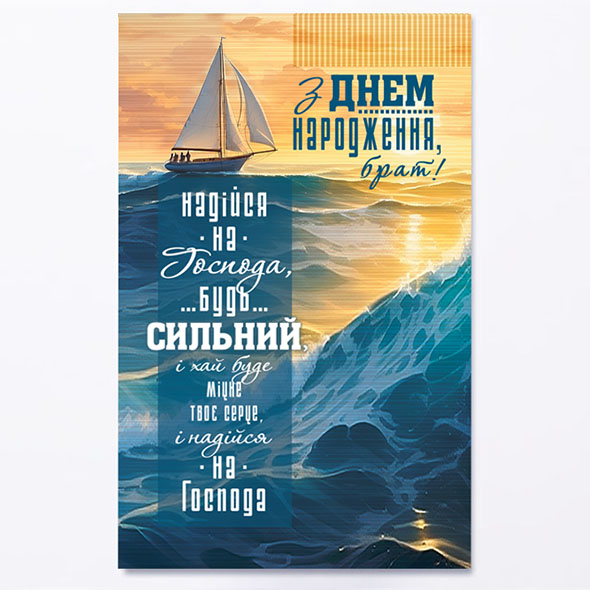 текст на зворотньому боці: "Будь сміливим! Нехай прагнення йти за Богом веде тебе за Ним! Пам"ятай, що той..."